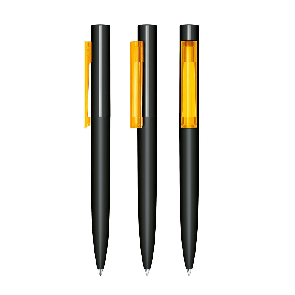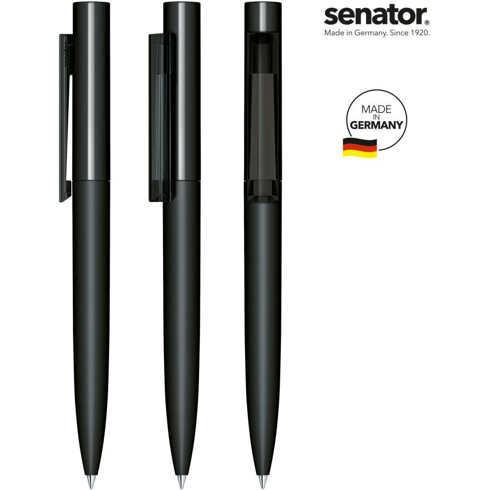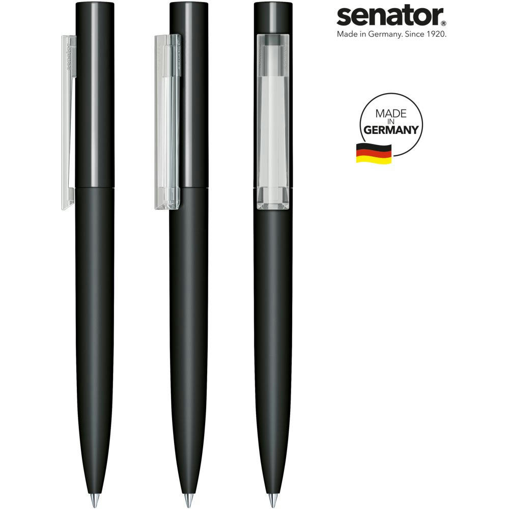 Drehkugelschreiber „senator® Headliner Soft Touch“ – geradlinig und originell. - Der „Headliner Soft Touch“ zeigt sich mit einer hochwertigen Soft Touch-Lackierung in Schwarz, die sich samtweich anfühlt und besonders griffig in der Hand liegt. Ein transparenter, farbiger Clip sorgt für einen modernen Kontrast und macht das klare, geradlinige Design zu einem Blickfang. - Die senator® magic flow G2 Mine (1,0 mm) sorgt für bis zu 5.000 Meter Schreiblänge – präzise und flüssig. - Der Kugelschreiber ist Made in Germany und steht für höchste Qualität, Langlebigkeit und Zuverlässigkeit. Eine kostenlose Ersatzmine verlängert die Nutzungsdauer zusätzlich.