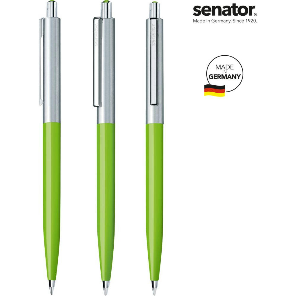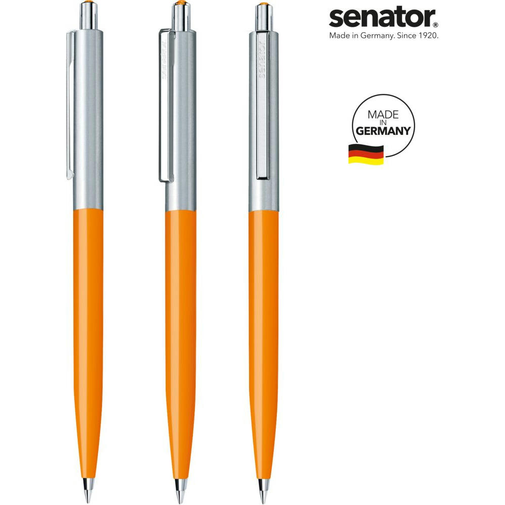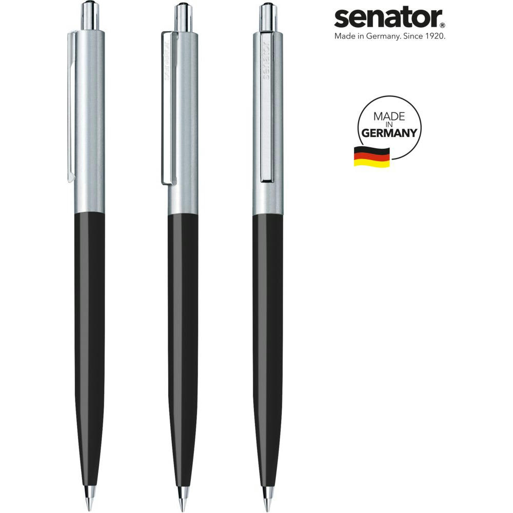 Druckkugelschreiber „senator® Point Metal“ – schlank und zeitlos. - Der „Point Metal“ kombiniert ein glänzend opakes Vorderteil mit einem Oberteil aus gebürstetem Edelstahl. Metallbeschlagteile und ein Kunststoffdekorpunkt in Schaftfarbe im Drücker runden das elegante Erscheinungsbild ab. - Ausgestattet mit einer senator® Qualitäts-Metall-Großraummine (Minentyp: G2) bietet er eine Schreiblänge von bis zu 5.000 Metern – gleichmäßig, zuverlässig und sauber. - Der Kugelschreiber ist Made in Germany und steht für höchste Qualität, Langlebigkeit und Zuverlässigkeit. Eine kostenlose Ersatzmine verlängert die Lebensdauer zusätzlich.