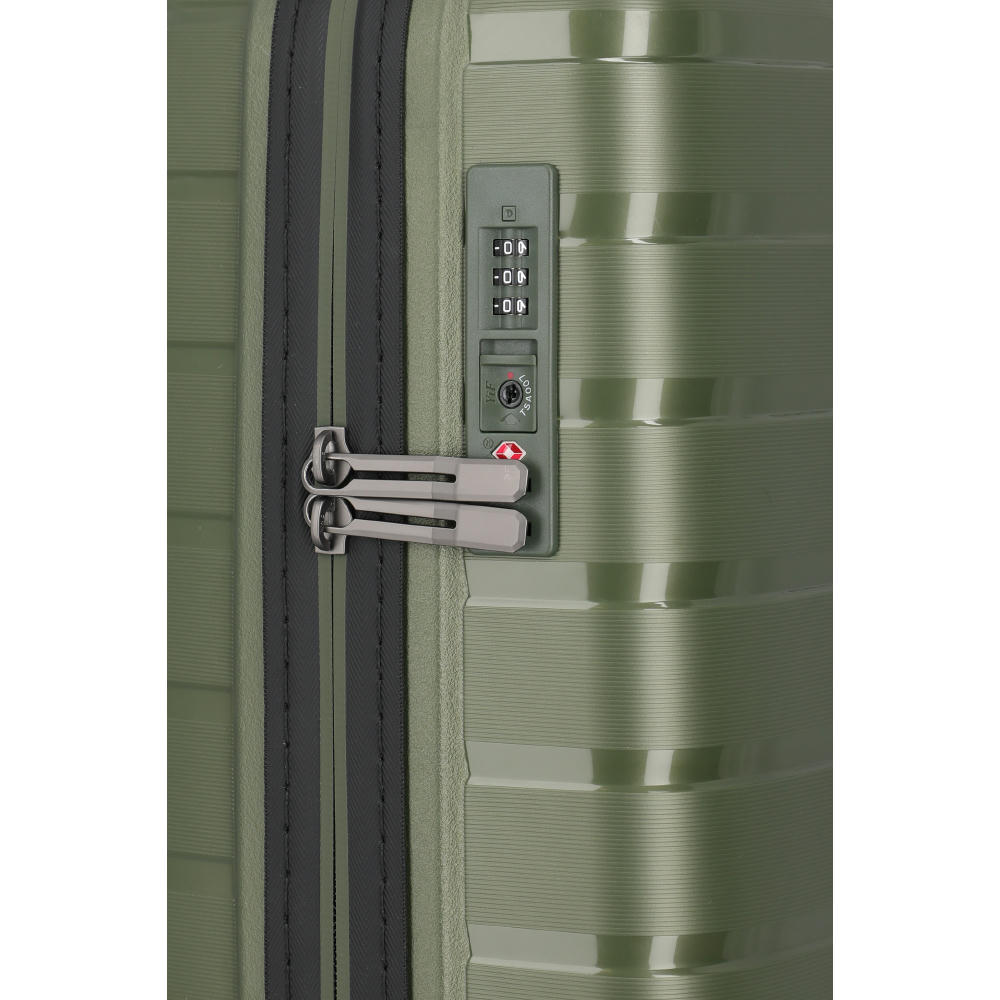 Details und Funktionen: * Aus widerstandsfähigem Polypropylen * Nahezu unverwüstlich * Einzigartige Oberfläche mit Wechselspiel aus rauen und glänzenden Elementen * Versenktes TSA-Kombinationsschloss * Vier Doppelrollen * Stabiles, arretierbares Teleskopgestänge * Hochwertiges Innenfutter * Elastische Packgurte * Beidseitige Packwände mit zusätzlichen Reißverschlusstaschen